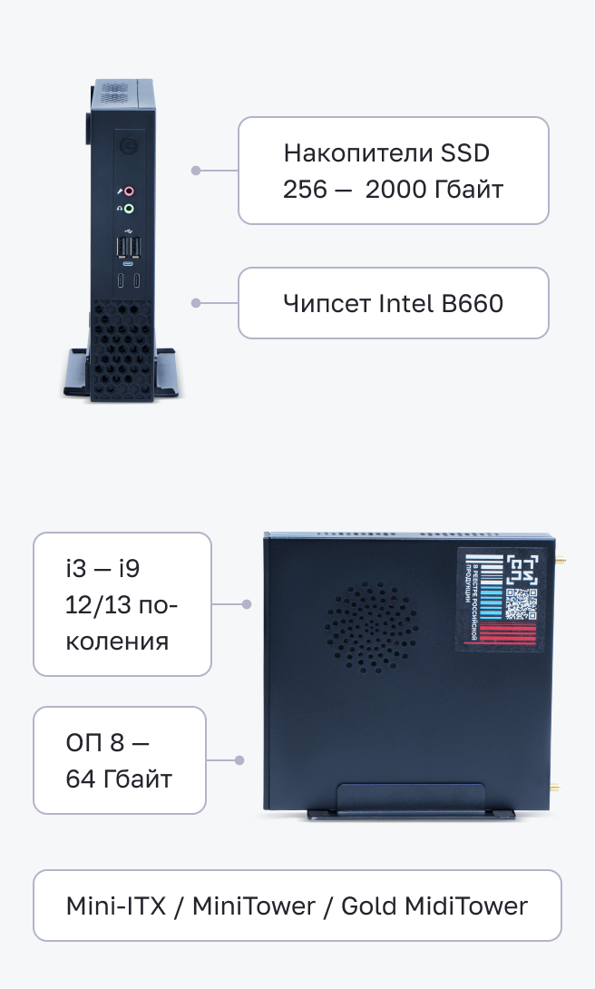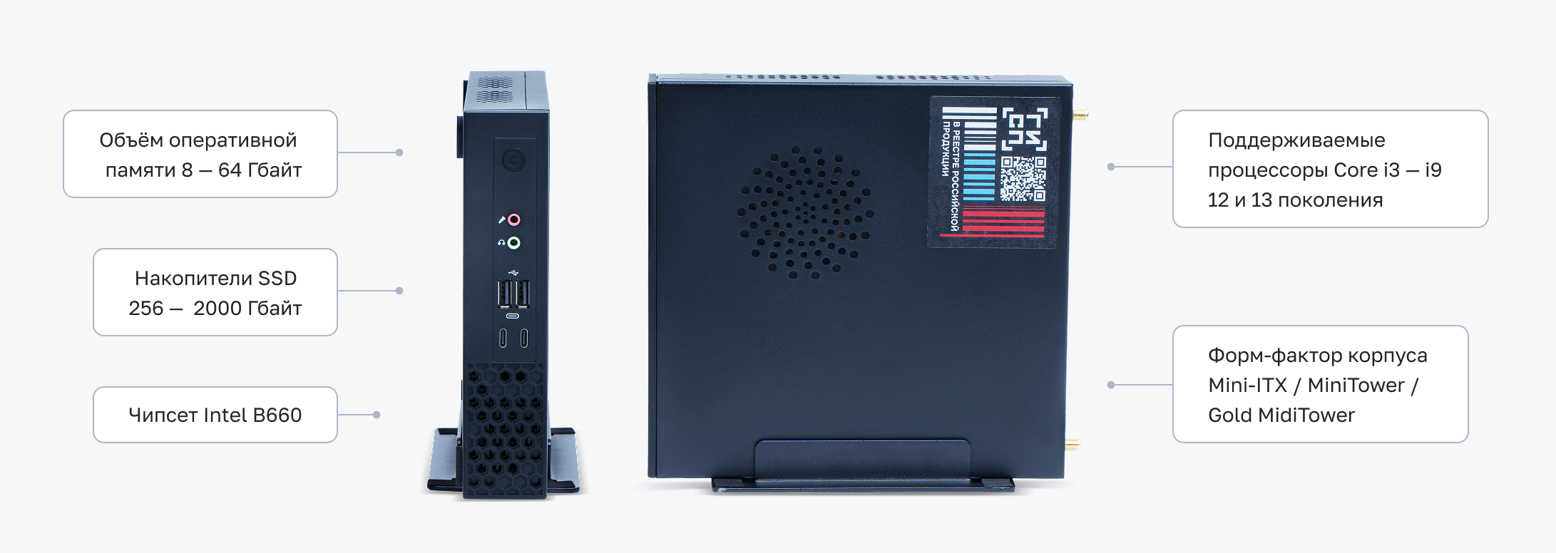 | Хранение данных | 512Gb SSD SATA 6Гбит/с 2,5" или SSD M.2 PCIe |