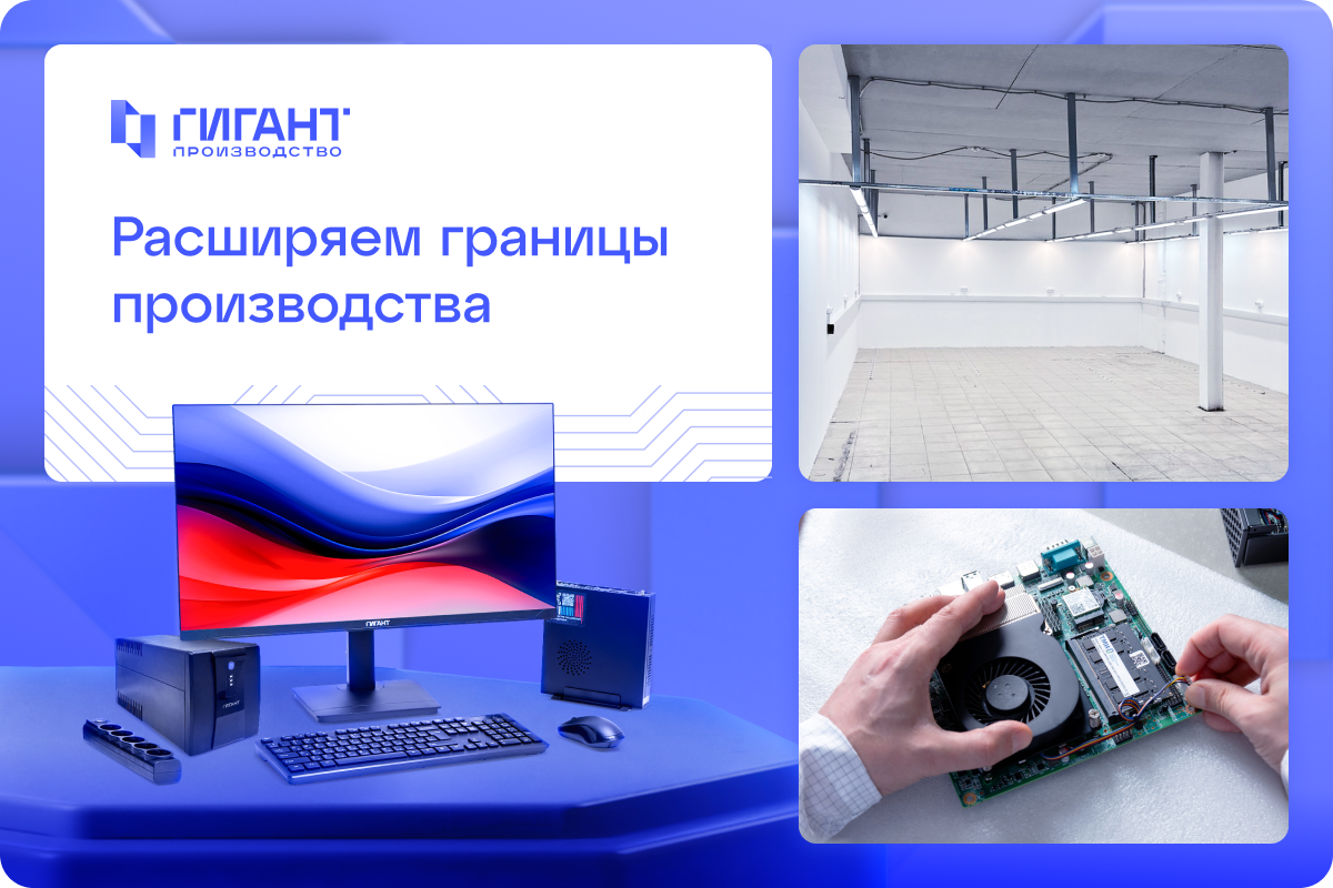 Компания ГИГАНТ Производство объявляет о запуске дополнительных площадей высокотехнологичного производственного комплекса, предназначенного для выпуска современного ИТ-оборудования. Масштабный проект позволит значительно увеличить объемы производства и укрепить позиции компании на рынке IT-решений.